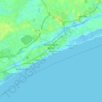 Elevation of North Myrtle Beach,US Elevation Map, Topography, Contour